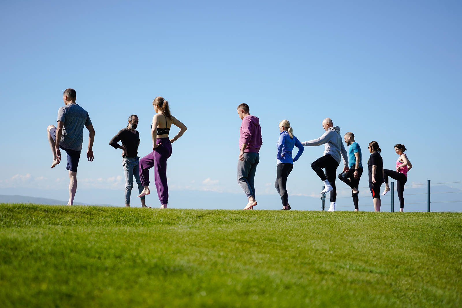 Yoga masterclass on the lush green golf course, followed by a well-balanced breakfast from ONO at Hills and served on a terrace with astonishing views.